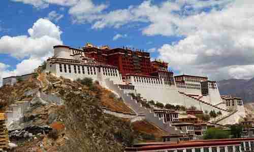 早餐后前往游览布达拉宫、大昭寺。【布达拉宫】(含门票200元/人)(游览60分钟),座落于拉萨市西域区,是世界上海拔最高的古代宫殿,其殿宇巍峨,金碧辉煌,集中了藏族人民建筑、 绘画、雕刻等艺术上的高度成就和独特风格,被称誉为世界屋脊上的一颗明珠。下午参观建于吐蕃王朝时期最早的佛堂—【大昭寺】(含门票85元/人)(游览50分钟),是拉萨最古老的寺庙,至今仍然是整个藏区地位崇高的中心寺。 |